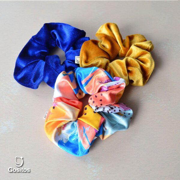 1 SCRUNCHIE DE LYCRA 2 SCRUNCHIES TERCIOPELO Ideales para un fuerte agarre de tu pelo! Hermosos y únicos diseños, telas 100% personalizadas!